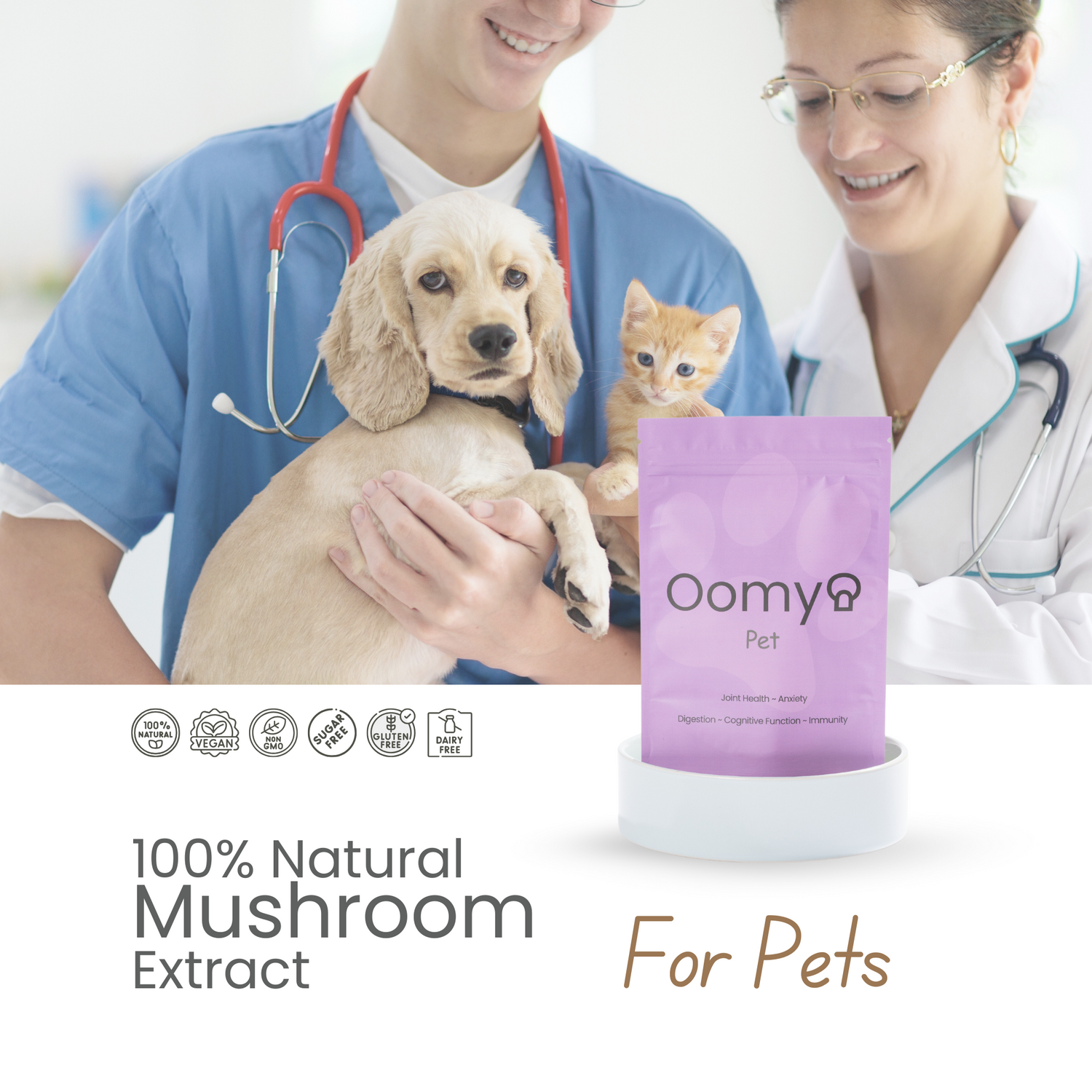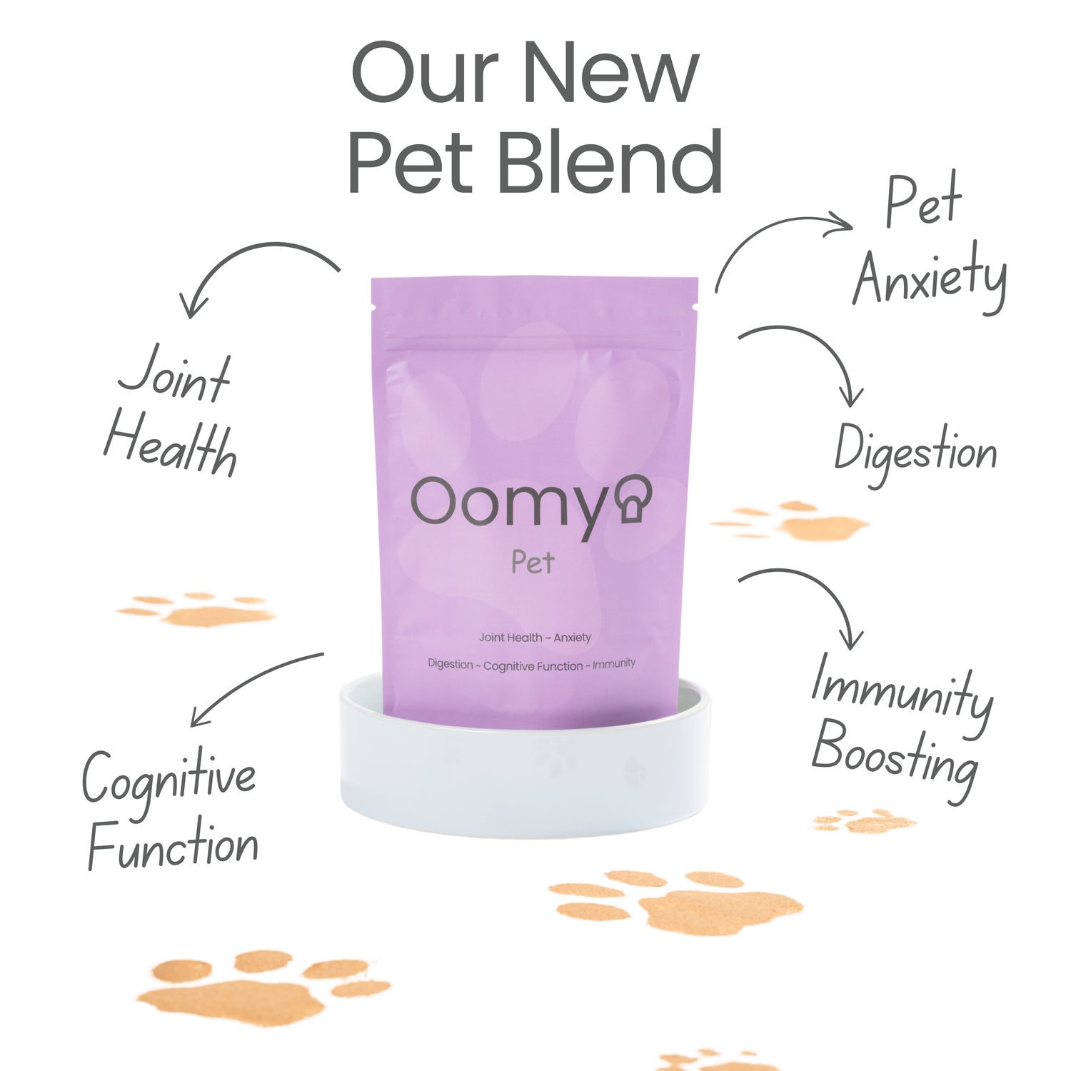 Give your pet the ultimate health boost with Oomy Pet, a premium, mushroom-infused supplement crafted to support vitality, mobility, and overall well-being. Packed with the natural power of mushrooms, Oomy Pet Blend is made with the same gold standard Reishi and Lion’s mane we use in our human products, because your furry friend deserves the good stuff too!